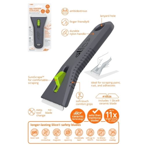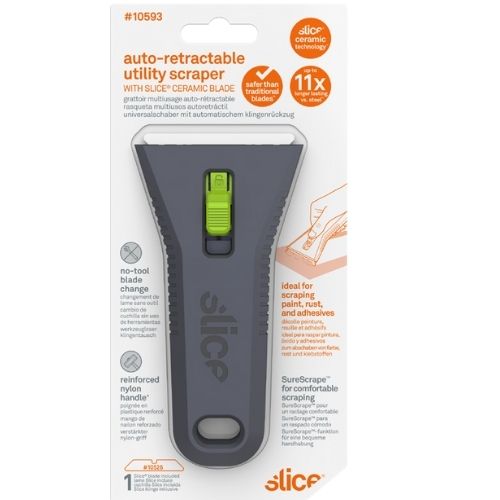 - סכין Utility מתקפל Slice® 10593 הוא הגרסה הניידת והבטיחותית לסכיני העבודה המסורתיים.