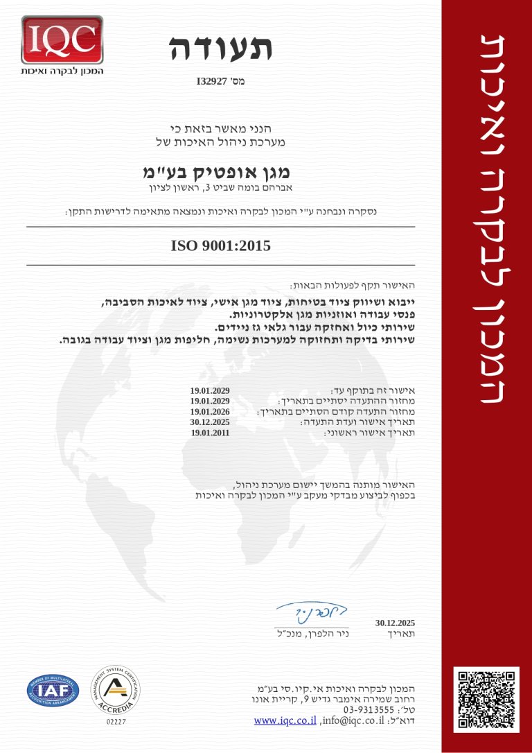 - אנו פועלים לפי תו האיכות הבינלאומי ISO 9001:2018